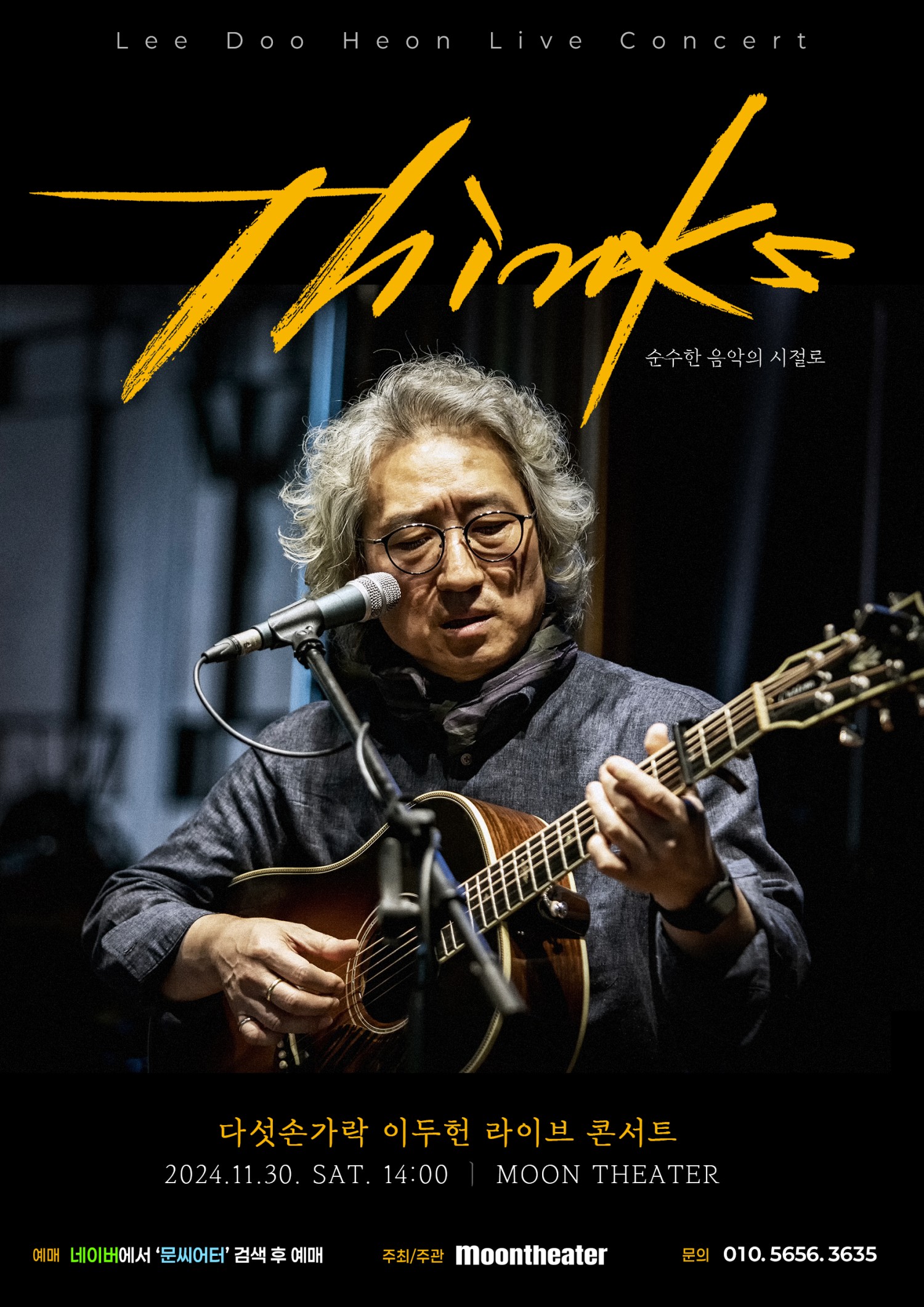 새벽기차, 풍선, 수요일엔 빨간장미를 등 다수의 힛트곡을 발표한 다섯손가락의 작곡자이자 리더인 이두헌 공연이 문씨어터에서 11월30일 오후 2시에 있습니다. 힛트곡 넘버들과 신곡들로 채워질 이번 공연은 어쿠스틱 기타로 전곡이 연주되어 특히 기타를 사랑하는 분들께는 더할 나의없이 좋은 공연이 되지않을까 합니다. 늦은 가을 펼쳐지는 따뜻한 공연 많은 관심 부탁드립니다.