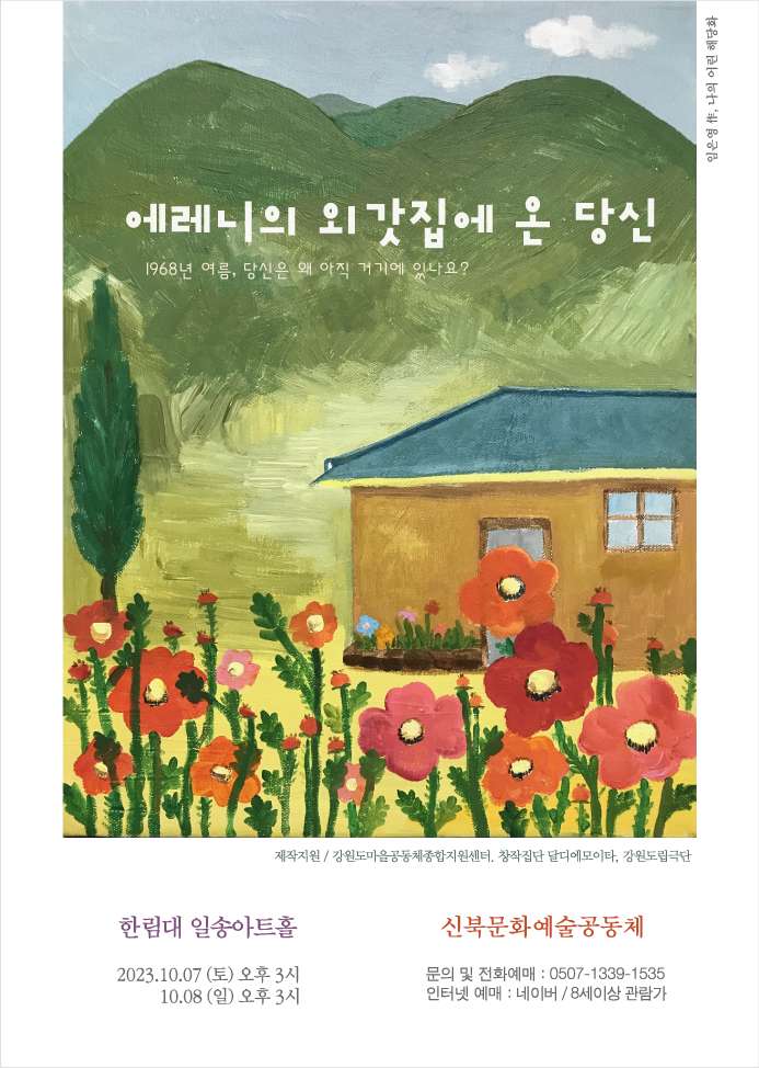 1968년 여름. 그 해의 잊을 수 없는 해당화꽃 향기와 서 있는 슬픔처럼 퍼붓던 폭우. 우리는 왜 아직 그때를 서성거릴까. 댐이 생기기 전의 소양강변을 배경으로 한 150분간의 음악극