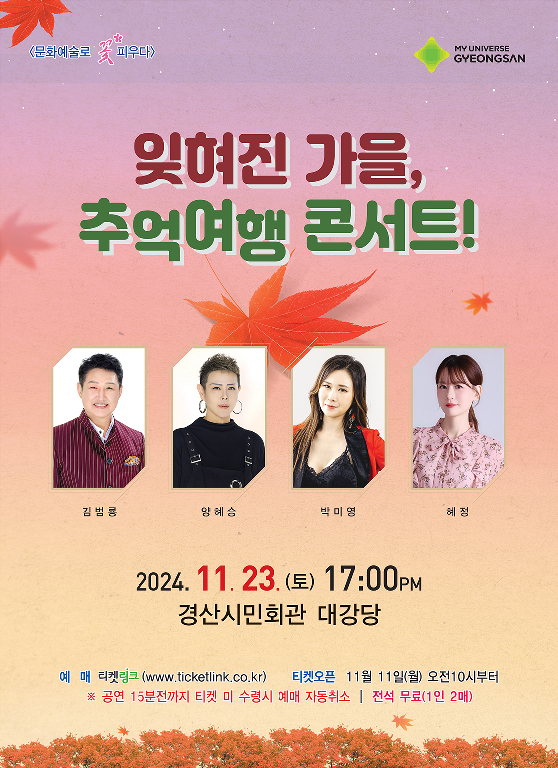 경산시민회관 특별기획공연: 잊혀진 가을, 추억여행 콘서트!