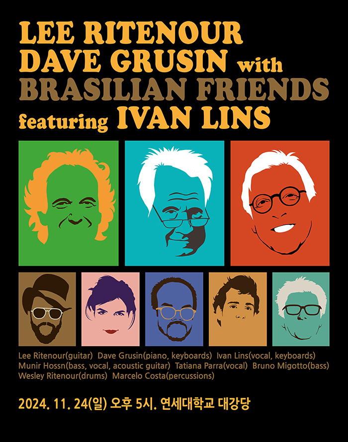 퓨전재즈의 거장 리 릿나워와 데이브 그루진이 다시 만났다. GRP 레이블의 간판 아티스트로 퓨전 재즈를 대표하던 두 거장이 Harlequin 앨범이후 다시 브라질로 돌아가 녹음한 새 앨범 Brasil이 6월에 전세계에 공개되었다. 이를 기념하기 위해 리 릿나워, 데이브 그루진 그리고 이반 린스와 앨범에 참여한 브라질 뮤지션들이 함께 하는 아주 특별한 공연이 서울에서 열린다. 올해 90살을 맞이한 데이브 그루신, 2007년 이후 무려 17년에 다시 한국을 찾은 이반 린스가 올해 79살임을 감안하면 리 릿나워, 데이브 그루신, 이반 린스 세 명을 한국에서 볼 수 있는 기회는 이번이 처음이자 마지막이 될 가능성이 높다고 할 수 있다. 그러기에 이번 공연을 절대 놓쳐서는 안될 것이다.
