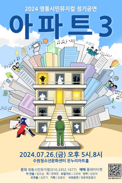 이번에 올려지는 '아파트3'는 '아파트1,2'와 또 다른 매력으로 새롭게 각색되었습니다 마음을 주고 받기에 쉽지 않은 네모난 공간 속에서 시멘트 벽 하나를 사이에 두고 사는 우리 이웃의 울고 웃는 이야기를 함께 생각해보는 작품입니다 '진정한 행복은 우리 자신의 마음으로부터...'