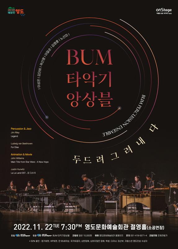 1. Andrew Lloyd Webber - The Phantom of the Opera 80년대 가스통 르루의 소설 오페라의 유령을 바탕으로 제작된 세계 4대 뮤지컬 중 하나. 뮤지컬 안에 유명한 곡들을 메들리로 편곡하였다. 2.Nathan Daughtey - Techno-Pop 80년대 전자댄스음악에서 영감을 얻어 작곡되었으며, 16비트패턴을 사용하는 매우 리듬감 있는 곡이다. 3. Mason Lynass - Tesserae 미니얼리즘(최소한의 표현주의)과 '드럼엔베이스' 그루브를 가지고 있는 곡으로, 3명 또는 4명으로 연주하느냐에 따라서 12/8박 또는 3/4박으로 느낄 수 있다. 4. Alex Stopa - Marries Life 디즈니/픽사 영화'Up' 장면의 정서와 원곡의 매력을 왈츠풍으로 맛깔스럽게 재현했다. 5. Tricks of the Trade - Danny Raymond, Rion Smith 드럼세트와 마칭스네의 high-energy(70년대 후반~80년대 중반에 걸쳐서 뉴욕의 클럽을 중심으로 유행하던 음악)듀엣곡이다. 락, 펑크, 드럼&베이스의 구르브 섹션으로 구성되어 있다. - 인터미션 15분 - 6. Jim Riley - Legend 재미있는 락 스타일의 작품으로, 변박이 심하고, 드럼솔로가 돋보이는 곡이다. 7. Ludwing van Beethoven - For Elise 베토벤의 피아노를 위한 소품곡으로 퓨전재즈스타일로 편곡해 타악기의 특유의 리듬감이 돋보이도록 하였다. 8. Ryan Loud - Naplali 타악기앙상블과 재즈리듬섹션이 결합된 작품으로 하와이 나팔리 해안의 여행을 통해 영감을 얻었다. 9. Brian Mueller - Big Adventure 건반타악기(벨, 실로폰, 비브라폰, 마림바)에 드럼, 콩가, 피아노 등 리듬 섹션으로 구성되었으며, 원래 마칭밴드 곡으로 작곡하려고 생각했지만, 약각의 가벼운 마음과 재미를 더하였다. 10. Klaus Badelt - Pirates of the Caribbean 영화 '캐리비안의 해적'의 메들리곡으로 타악기만의 독특한 음색과 신비로움을 느낄 수 있다.