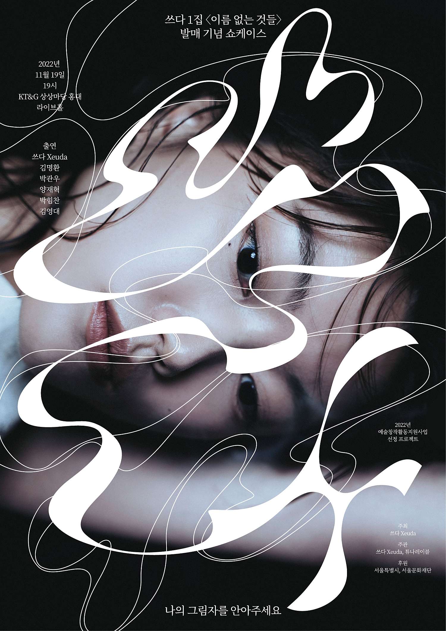 살아있는 것만이 반대로 가는 것을 할 수 있다. 흐르는 감정을 그대로 흘려보내지 않고, 보고 멈추고 다시 쓴다. 내 안에 존재하였으나 동시에 존재하지 않았던 감정들, 이름 없는 그 감정들에게 이름을 붙이고 부른다. 이름 없는 것들이 스스로 이름을 붙인다. 어쩌면 내 마음은 이름이 없는 감정들이 이루고 있는 마을 같은 게 아닐까? 그래서 이 그림자 같은 존재를 그려보기로 했다. 이름 없는 것들의 마을로 한 번 들어가 보자고. 마을을 돌고 나올 때, 나는 내 그림자들을 사랑할 수 있을까? 너는 나의 그림자들을 안아줄 수 있을까? 쓰다의 5년 간의 활동을 꾹꾹 눌러담은 1집 앨범을 라이브로 선보입니다. 쓰다의 이름 없는 것들의 마을로 여러분을 초대합니다.