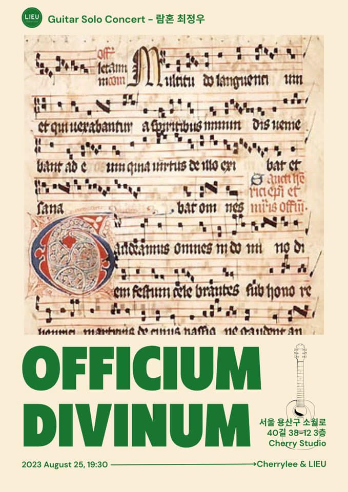 소월 기타 솔로 콘서트 'Officium Divinum' - 람혼 최정우 2021년 발매 기념 공연과 2022년 재해석 공연을 통해 점점 확장되고 있는 람혼 최정우의 기타 솔로 앨범 연속 공연의 세계, 그 2023년판 'pure version'. 올여름 다시 가장 원류적인 기저로 돌아가 전곡을 음향장치 없이 나일론/어쿠스틱으로만 연주하며 LIEU 공간을 함께하는 모든 이들과 소리와 이야기를 나눈다. 파리의 몽마르뜨의 감성을 그대로 한국에서 이태원 '소월길'로 가져온 듯한 느낌을 가질 수 있는 콘서트. 평소 기타솔로,어쿠스틱을 좋아하시거나 평소 프랑스문화에 관심이 있으셨던 분들, 프랑스 홈 파티 느낌을 체험해보고 싶으시다는 분들을 위해서 준비하였으니 많은 참여와 관심 부탁드립니다.
