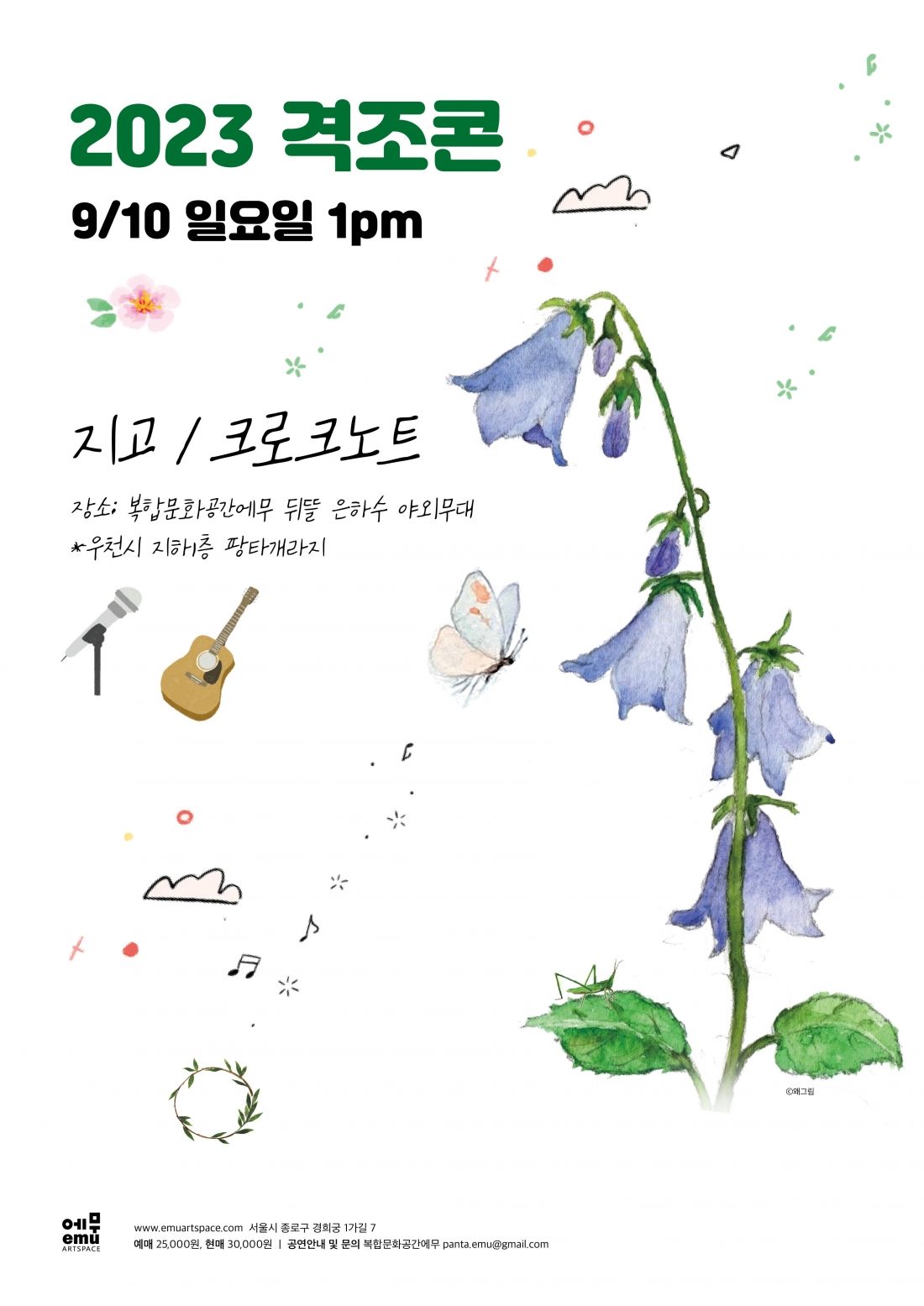 격조하지만 격조있게, 거리두기 콘서트 - 지고/크로크노트 지고 _ 본명인 지순과 합치면 무려 지고지순. 지순은 뜻 지(志)에 온순할 순(順). 선한 뜻을 품고 사는 사람이라고 합니다. 밴드 후하의 맴버이기도한 지고의 공연을 격조콘 무대를 통해 만나 보실 수 있습니다. 어리광 (Winning Play) - 작사.곡 / 박지순 '한 번씩 흔들리고, 불안해질 때면 나는 그냥 어린아이입니다. 언어는 한때 충분했고, 그 중에 마음까지 닿았던 말들이 남았다 해도 살아나지 않는 순간. 약간의 아쉬움도 들어올 틈이 없도록 긴 시간, 천천히, 공들여 안아주세요' 크로크노트_ 프랑스어로 '서투른 음악가' 라는 뜻입니다. 서투르지만 기타와 목소리로 마음을 담아 노래하는 싱어송라이터 입니다. 이번 격조콘에서 몽환적이고 산뜻한 무대를 만나 보실 수 있습니다. 두 잔 '날씨에 핑계를 대며 가벼운 바람에도 마음이 세차게 흔들리는 날. 당신도 오늘 나와 같이 흔들렸으면 좋겠어요. 돌아가 다시 혼자가 되더라도, 우리가 오늘은 각자의 밤을 함께 부딪히며 보낼 수 있기를 바라며. 짠!'