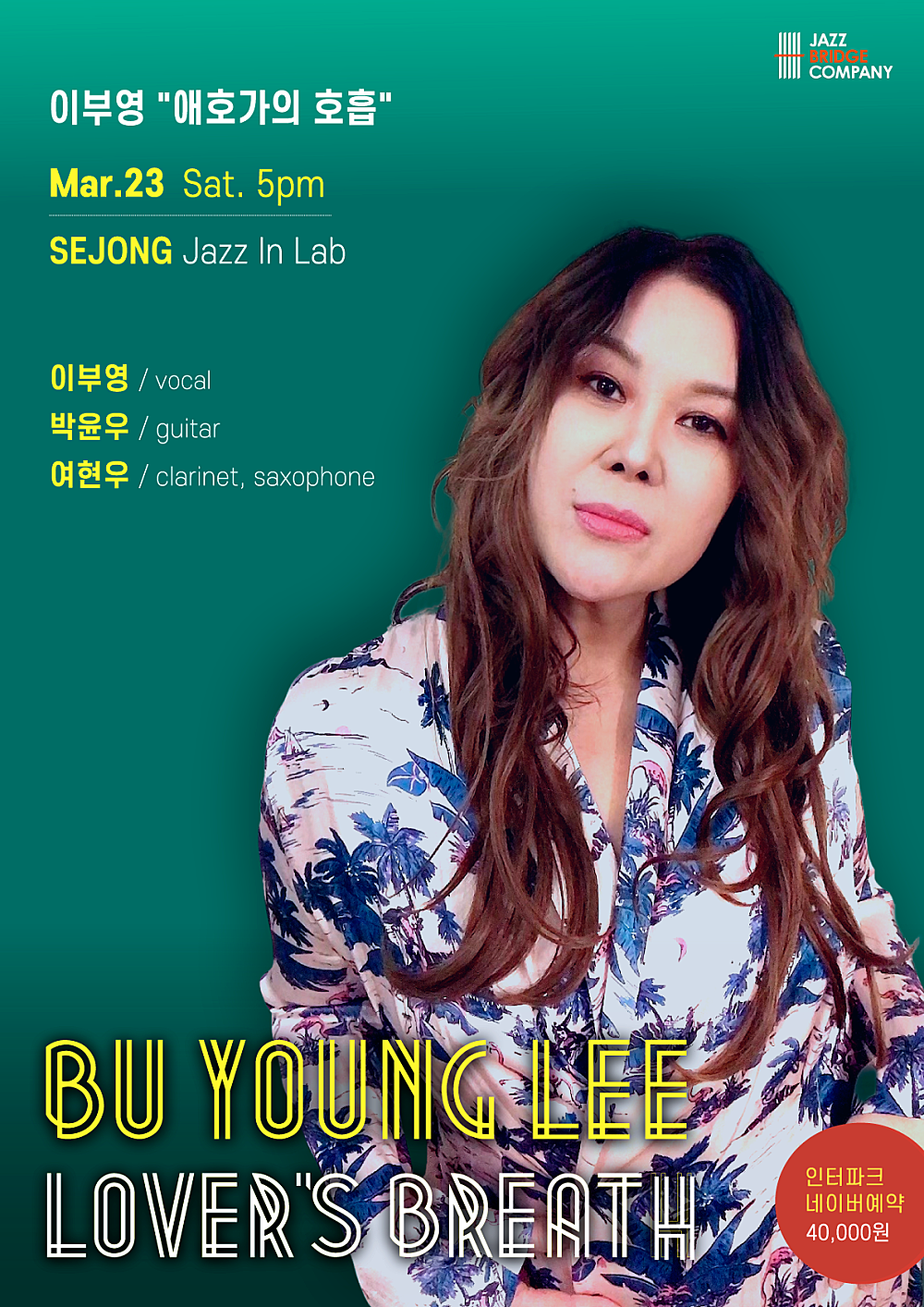 영혼을 사로잡는 재즈 보컬리스트 이부영, 그녀가 새롭게 선보이는 재즈 스탠더드와 자작곡들 깊이 있고 허스키한 톤의 중저음 부터 뜨거운 울림을 주는 비브라토의 고음까지, 재즈 보컬리스트 이부영은 그녀의 목소리와 노래로 듣는 이의 영혼을 사로잡는다. 국내에서는 ‘인상주의 보컬리스트’라는 평가를 받으며 발매하는 음반마다 관객과 평단의 찬사를 받으며 모두의 마음을 사로잡았다. 2016년 정규 4집 음반 'Little Star'로 ‘한국대중음악상 최우수 재즈보컬 음반' 수상과, 2021년 정규 6집 음반 ‘Love, like a song’으로 ‘한국대중음악상 최우수 재즈보컬 음반’ 후보에 오른 그녀는, 마치 그림을 그리듯 노래하며, 우리 각자가 간직한 향수를 불러일으키는, 오랫동안 잊히지 않는 애틋한 여운을 남기는 한편의 아름다운 예술영화를 관람한 것 같은 느낌을 선사한다. 2023년 겨울에 발매된 이부영의 정규 7집 ‘애호가의 호흡’은, 누구나 편안하고 거리감 없이 접할 수 있는 새로운 해석의 재즈 스탠더드와 새로운 자작곡을 소개한다. 이부영 트리오는 뛰어난 어쿠스틱의 질감과 독특한 분위기를 자아내는, 매우 시각적인 재즈를 들려주며, 비교적 느리고 따듯한 호흡으로 내면의 힐링까지 제공한다. 재즈 전문 기획사 재즈브릿지컴퍼니가 추천하는 ‘올해의 명반’의 라이브 버전인 이번 공연은, 서정적이고 때로는 몽환적이면서, 그 누구라도 거부할 수 없는 강렬한 이미지를 선사한다. 지난 여름 저녁의 푸른 하늘 (Blue skies), 부슬부슬 내리던 빗방울 (The gentle rain), 그리고 따듯하게 아침 동이 틀 무렵 바라보던 어떤 풍경이나 연인 (Summer is you)에 대한 느낌을 담고 있으며 독보적인 음색의 재즈 보컬리스트가 목소리로 그려내는 한 폭의 ‘인상주의 그림’을 관람하듯 느껴볼 수 있다.