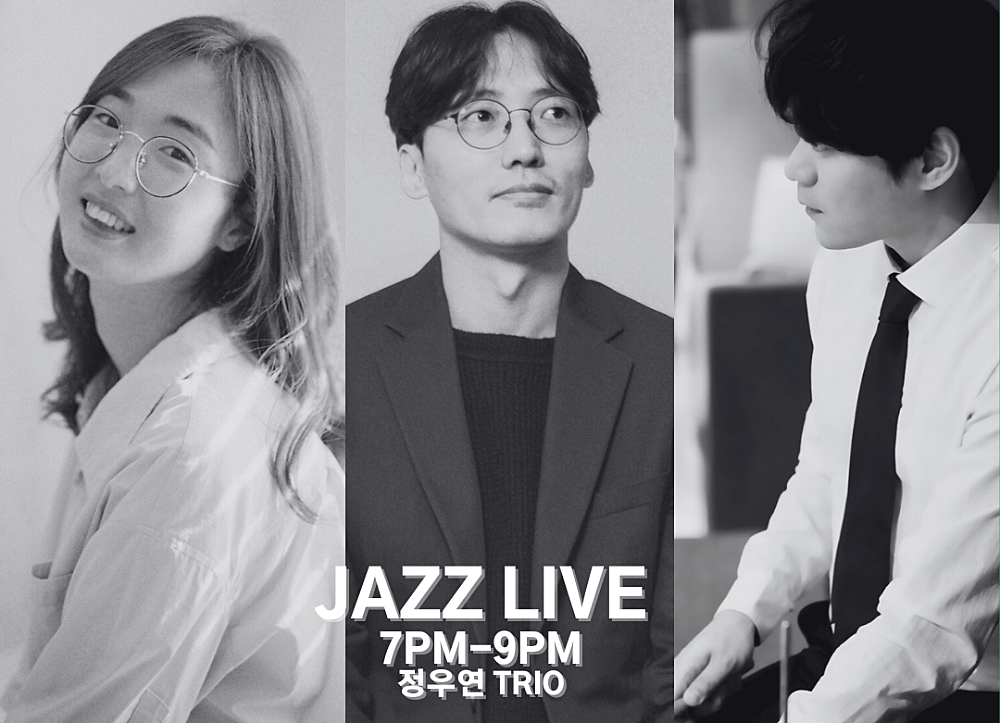 일상에 재즈 한 스푼! 자유롭고 편안한 분위기 속에서 재즈 라이브 공연을 즐길 수 있는 영화 속 한 장면같은 재즈바 공간입니다 최고의 재즈 아티스트들의 라이브 매력에 빠져보세요 정우연 TRIO 정우연 트리오는 탄탄한 스윙감과 안정감있는 연주력으로 재즈씬에서 인정 받는 피아니스트 정우연이 이끄는 3인조 정통 재즈 트리오이다. 깔끔한 연주로 팀의 중심을 잡아주는 베이시스트 백용훈과 묵직하고 따뜻한 포용력으로 탐 사운드를 받쳐주는 드러머 정성재와 정통 스윙의 진수를 선보일 예정이다.