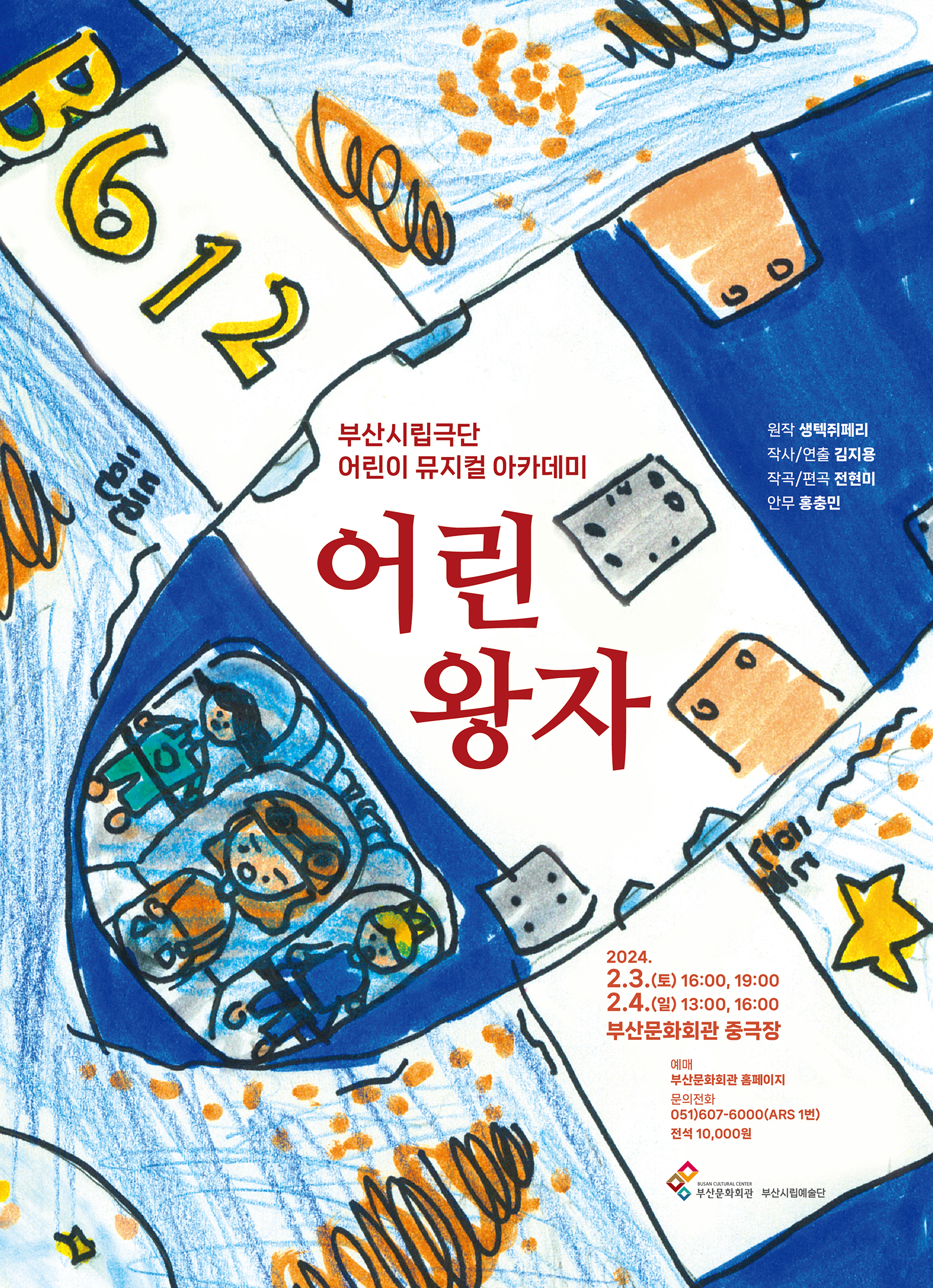 부산시립극단 특별공연 어린이 뮤지컬 아카데미 '어린왕자' 뮤지컬 '어린왕자' 는 오디션을 통하여 선발된 20명의 어린이들이 3개월의 연기, 노래, 춤의 트레이닝 과정을 거쳐 부산시립극단 단원들과 함께 호흡을 맞춘 공연입니다.